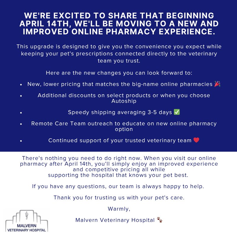 Established in 1926, Malvern Veterinary Hospital is a full service companion animal clinic in Malvern, PA.